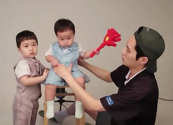 이와 함께 정우는 남다른 창의력(?)으로 웃음을 선사한다. 김준호가 “허리 피자”라고 하자, 정우가 돌연 뒤로 드러누우며 평범한 사진은 거부하는 4차원 면모를 보인다. 이때 은우는 “비행기 탈 거면 사진 찍어야 돼. 조금만 참아~”라며 동생을 달래는 의젓함을 보여 감탄을 자아낸다.