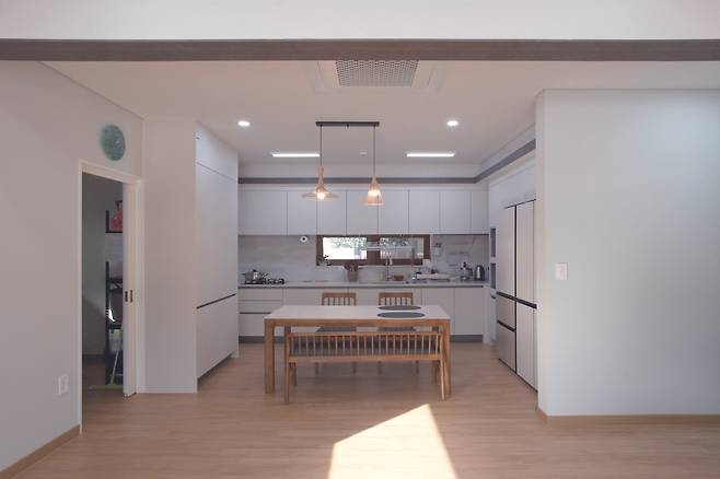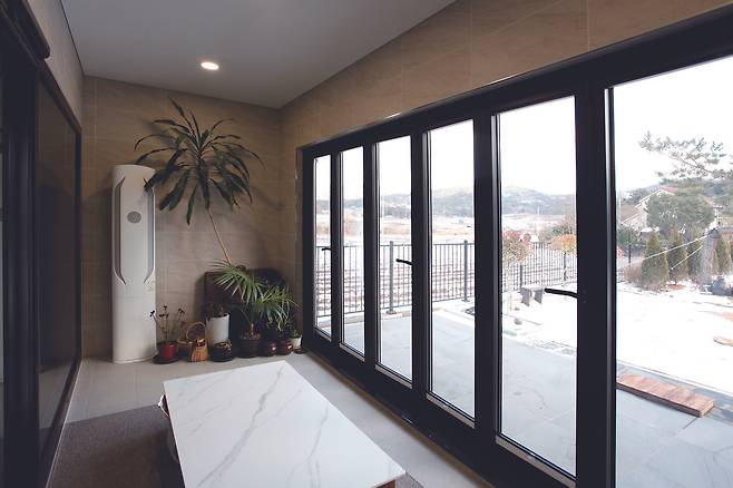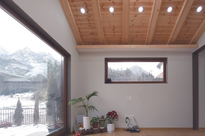 스페니쉬 기와를 얹고 세라믹사이딩으로 외벽을 마감한 지중해풍 전원주택이다. 눈 쌓인 마당과 현관을 지나 실내에 들어서자 따뜻한 온기가 전신에 전해진다. 건축주에게 지난 가을 입주해 겨울을 처음으로 나는 만큼 보온과 단열에 신경이 쓰이겠다고 질문하자 둘째와 셋째 처제가 지은 집을 겪고 봤고 지금까지 아무런 문제가 없는 것을 보니 기우에 불과할 것 같다며 미소를 보였다.