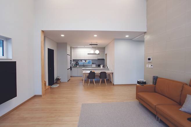 막내네 남편은 “아마도 처음으로 지은 우리 집을 보고 다른 방향으로 결정한 것 같습니다. 큰처형네는 거실 천장이 높지 않고 따뜻하면서 하자 없는 집을 바랐고, 둘째 처형네의 경우에는 2층에 사무실 방을 배치하기를 원했습니다. 취향이 조금씩 다르고 각자의 생활이 있는 만큼 집의 형태와 공간 구성에서 약간의 차이가 나타날 수밖에 없지요. 다만, 제가 그간 경험을 바탕으로 단열성과 기밀성이 좋은 독일식 3중유리 창호나 불연 성능이 좋고 관리 측면에서 유리한 18T 이상 세라믹 사이딩을 강하게 추천해 적용함으로써 비슷한 형태가 나타난 점은 있는 것 같습니다.”라고 말했다.