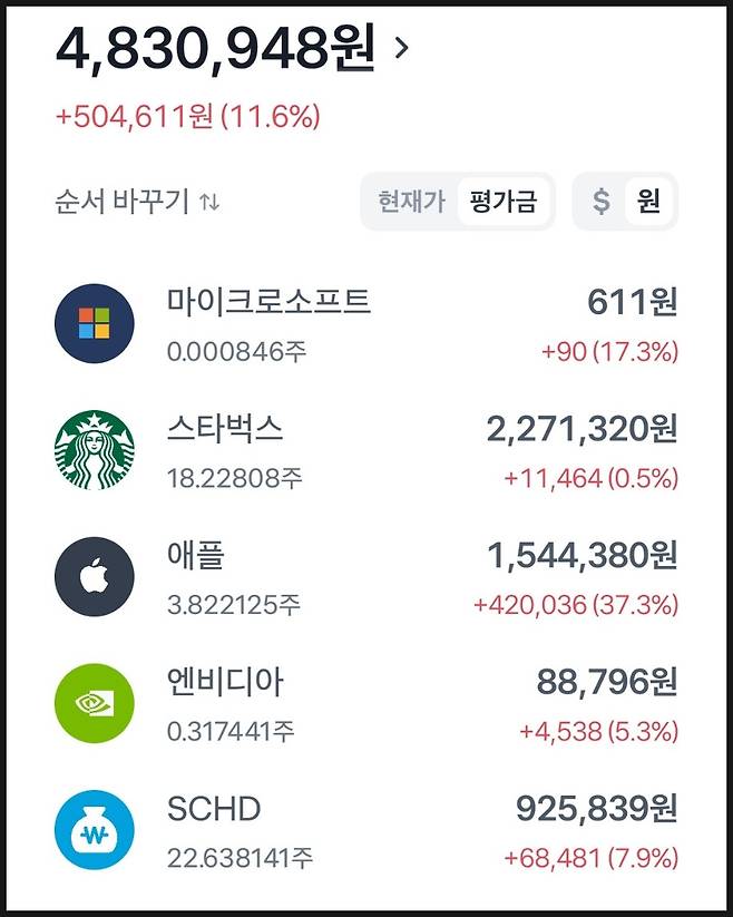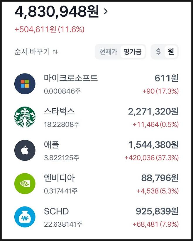 1년간의 투자 기록: 수익률 11.6%의 성과 저는 큰돈을 한꺼번에 넣기보다, 커피 한 잔 값으로 주식 모으기 기능을 활용했어요.