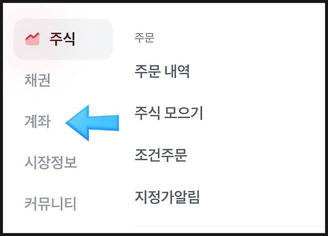 왼쪽 상단의 [계좌 아이콘] 클릭