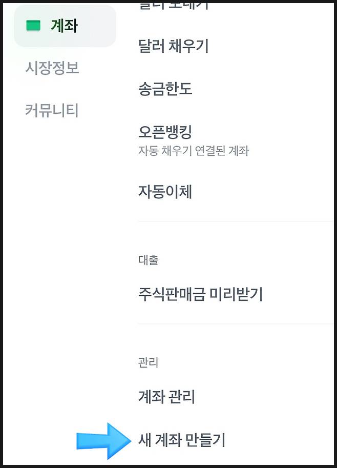 하단에 있는 [새 계좌 만들기] 선택