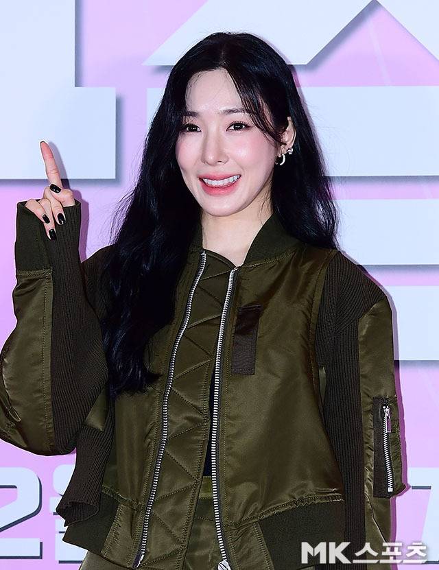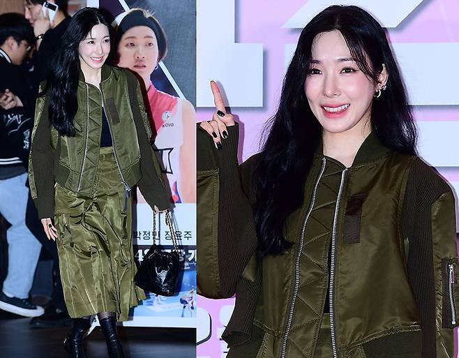 티파니영은 올리브 컬러를 활용한 밀리터리 무드의 룩으로 세련된 스타일링을 선보였습니다.