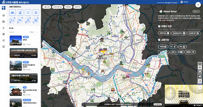 '매력서울지도'는 서울의 관광 매력 장소를 한 곳에서 확인할 수 있는 디지털 지도 서비스로 서울 여행을 계획하는 국내외 방문객에게 맞춤 정보를 제공한다.