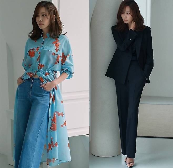 그 외에도 김남주는 시원한 소재감의 베스트와 와이드 팬츠에 블루 컬러의 이너탑을 착용하는가 하면, 컬러감이 돋보이는 퍼플 컬러의 니트 탑과 스커트로 여성스럽고 모던한 스타일링을 보여주었습니다.