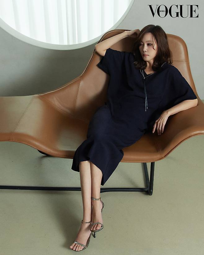 루즈핏의 원피스를 착용해 고급스러운 스타일링을 보여주거나, 루즈핏 블라우스형 자켓과 니트 스커트를 매치해 여성스러우면서도 우아한 룩을 완성했습니다.