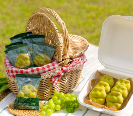 샤인머스캣빵은 부드러운 빵 속에 샤인머스캣을 통째로 넣은 고급스러운 맛이 특징이에요. 샤인찹쌀떡은 말 그대로 떡 안에 통샤인머스캣이 들어 있어 씹는 순간 포도 과즙이 톡 터지는 재미가 있어요. 그리고 흑마늘찹쌀떡은 건강 간식으로 특히 중장년층에게 인기가 많아요.