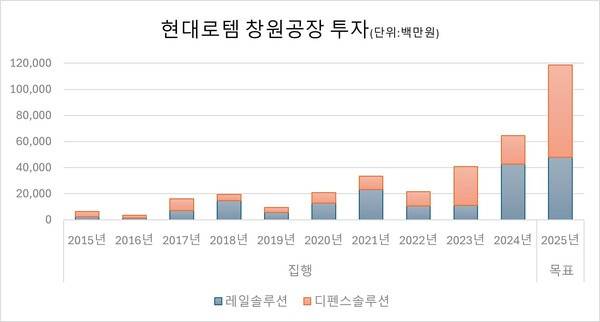 부문별로 보면 레일솔루션(철도) 설비 투자는 479억원으로 전년(427억원)과 큰 차이가 없다. 반면 전차, 장갑차 등을 생산하는 디펜스솔루션 투자는 709억으로 전년(219억원)의 223.6% 이상 늘렸다.