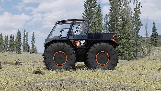 60년 역사의 캐나다 수륙양용 오프로더 제조업체인 아르고(Argo)는 주로 ATV와 8륜차를 제작한다. 하지만 회사에서 최근 공개한 사스콰치(Sasquatch)는 4륜 수륙양용 오프로드 차량으로 거대한 바퀴가 달린 상자 모양에 가깝다.