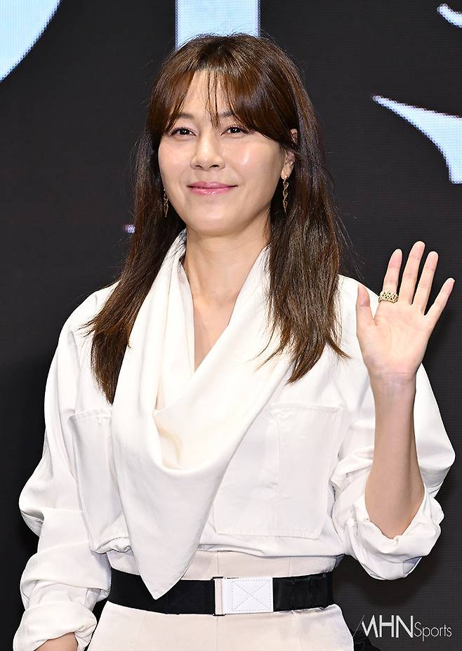 (MHN스포츠 이현지 기자) 배우 김하늘이 2일 오전 서울 영등포구 콘래드 서울에서 진행된 디즈니+의 오리지널 시리즈 '화인가 스캔들' 제작발표회에 참석해 포토타임을 갖고 있다.