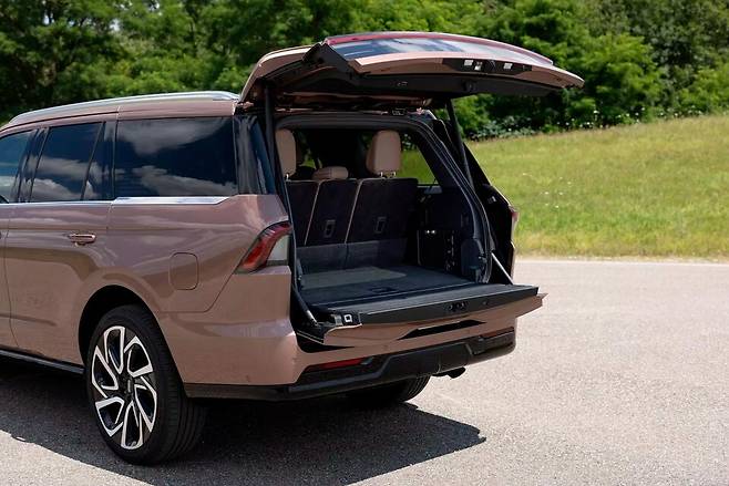 후면부는 수평으로 길게 연결된 미래지향적인 테일램프가 적용됐다. 그래픽은 신형 노틸러스와 유사하다. 또 테일게이트는 기존처럼 한 번에 개폐되는 타입이 아닌, 상 하단이 분리돼 열리는 스플릿 게이트가 적용돼 편의성을 높였다.