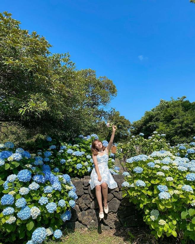 제주 돌담길을 따라 수국 포토 스팟
