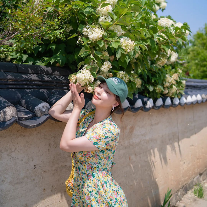 전통 기와와 어우러진 수국 포토 스팟