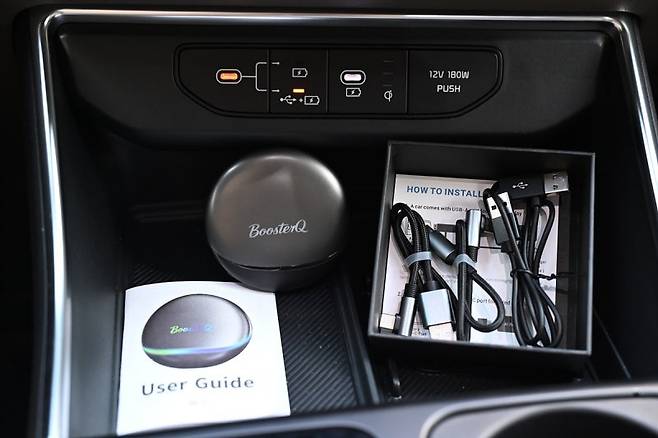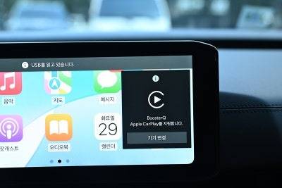 영양가전 부스터큐의 가장 큰 장점 중 하나는 바로 편의성입니다. 복잡한 배선 작업이나 설정 없이, 동봉된 USB 케이블을 본체와 차량의 데이터 포트에 연결하기만 하면 모든 준비가 끝납니다. 기존에 유선 애플 카플레이가 활성화된 상태에서 결속시키면, 시스템이 자동으로 인식하여 BoosterQ 기기로 연결을 전환합니다.