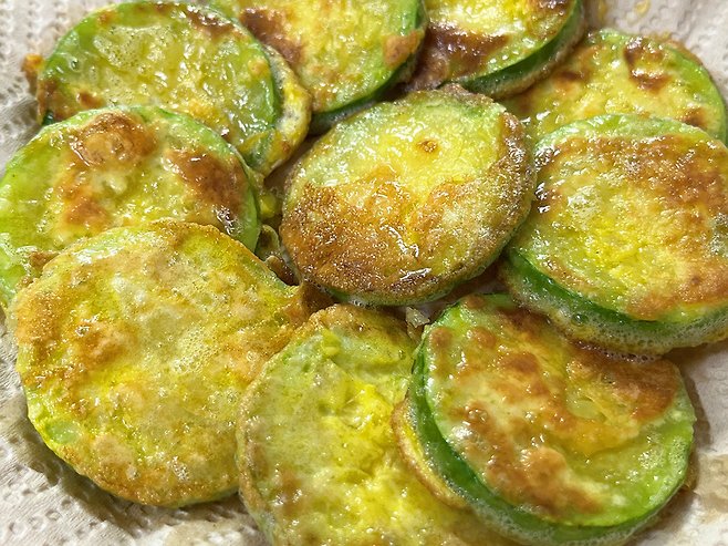 소금 간을 했기 때문에 굳이 소스에 찍어 먹지 않아도 맛있습니다. 노릇한 호박전, 설날 명절 음식으로도 제격입니다!