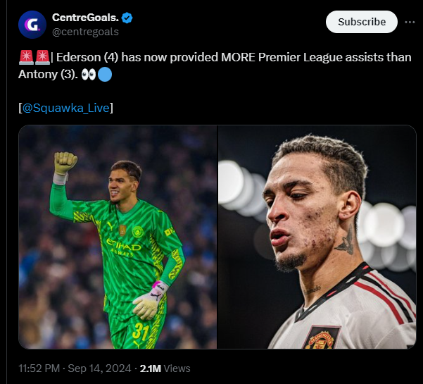 이런 안토니가 PL서 기록한 도움은 '고작' 3도움. 최근에는 맨체스터 시티의 골키퍼 에데르손이 통산 4도움을 기록하면서 안토니보다 더 많은 도움을 기록하게 돼서 큰 화제를 모은 바 있다. 포지션의 차이를 생각하면 두 시즌 밖에 안 뛰었다고 하나 골키퍼에 뒤쳐질 수 밖에 없을 정도로 돈값을 못하고 있다.