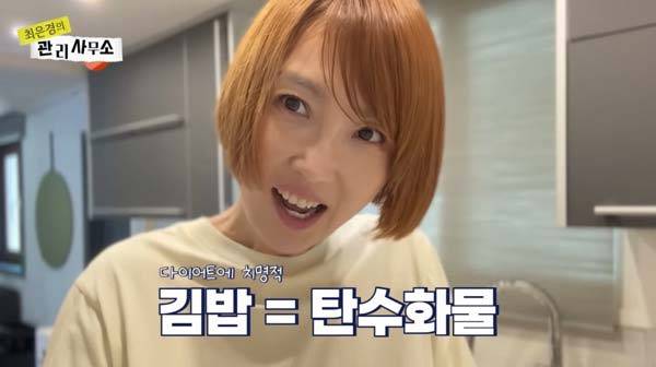 한편, 다이어트할 때 김밥을 먹는다면 최은경처럼 김밥 속 재료를 신경써야 한다. 탄수화물 함량이 높은 쌀 대신 최은경처럼 메밀면을 넣거나 포두부, 달걀지단 등을 넣은 김밥을 먹는 게 좋다. 밥을 꼭 먹고 싶다면 일반 쌀 대신 곤약쌀을 넣는 것을 추천한다. 곤약은 구약감자를 가공한 것으로, 수분이 97%라 열량이 거의 없는 저칼로리 식품이다. 포만감이 높아 음식 과다 섭취를 막아준다는 점에서도 다이어트에 도움 된다.