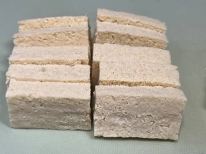 또한 얼린 두부는 수분이 빠져나가 용량 대비 단백질 함량이 높아집니다. 탄력이 좋아지기 때문에 일반적 두부의 식감이 아니라 유부와 가까운 식감을 냅니다.