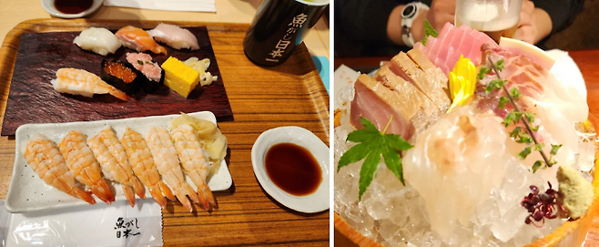 더 많은 국산 업체들도 있었지만, 첫날 오후 늦게 입장했던 터라 일찍이 나와서 식사. 아시는 분들의 아시겠지만 회를 잘 못 먹는 외국인으로서 Ebi 새우 초밥만 맹공격...