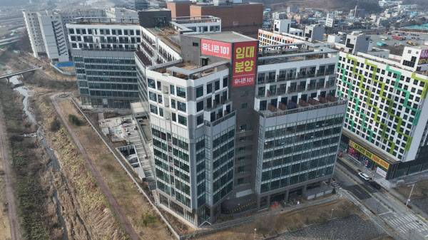 유니콘 101 지식산업센터는 지하 2층~지상 10층 규모의 오피스형 지식산업센터입니다. 대지면적이 4000평이 넘는데요. 이 지식산업센터는 기숙사 290여개 호실, 지식산업센터가 330개 호실, 상가는 69개 호실로 구성돼 있습니다. 입주율은 30% 대에 불과합니다.