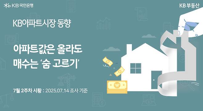 7월 2주차(2025.07.14 기준), 아파트 시장은 복잡한 흐름 속에 놓여 있습니다. 매매가는 소폭 상승세를 이어가는 반면, 매수 심리는 확연히 꺾였고, 전세시장은 수요 우위 상황이 더욱 뚜렷해졌습니다. 특히 서울은 25주 연속 아파트값이 오르고 있지만, 상승폭은 3주 연속 둔화되고 있는 모습입니다. 관망세 짙어진 아파트 시장 어디로 갈까요? KB부통산 주간시계열을 토대로 현재 부동산 흐름을 짚어봅니다.