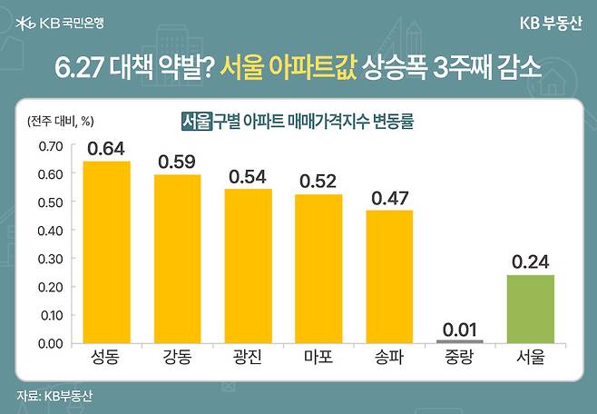 서울 아파트 매매가격은 이번 주 0.24% 상승하며 25주 연속 오름세를 이어갔습니다. 하지만 이는 전주(0.28%)보다 상승폭이 줄어든 수치로, 3주 연속 상승률이 축소했습니다.