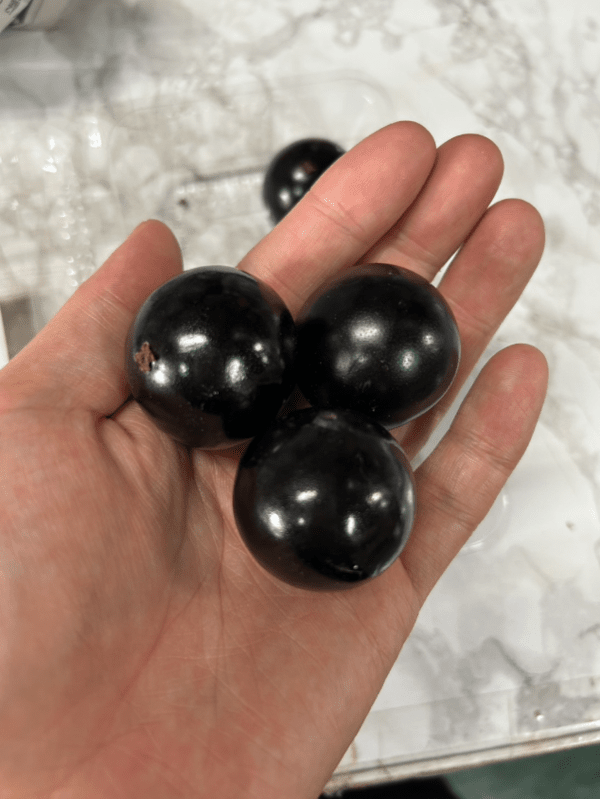 자부치카바(자보티카바)는 브라질 원산의 열대과일로, '브라질 포도'라는 별명을 가지고 있습니다. 외형은 포도와 비슷하지만, 나무 줄기와 가지에 직접 열매가 맺히는 독특한 성장 방식이 특징입니다. 껍질은 두껍고 진한 보라색을 띠며, 과육은 부드럽고 달콤한 과즙이 가득해 한 번 맛보면 잊기 힘든 특별한 풍미를 자랑합니다. 브라질에서는 신선한 과일로 먹거나, 주스·잼·와인 등으로 가공해 즐기기도 하죠.