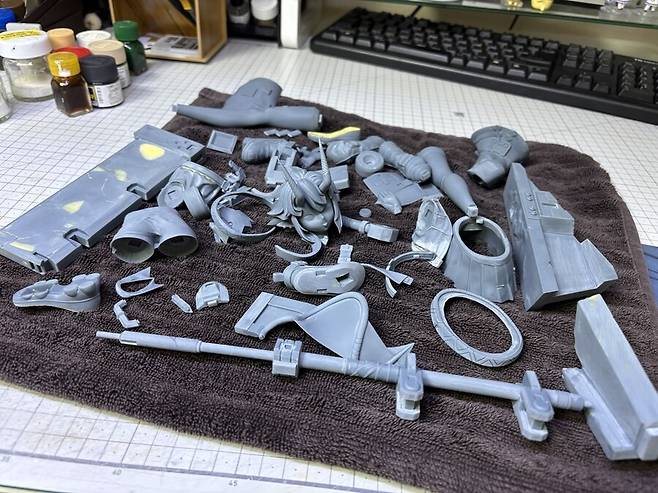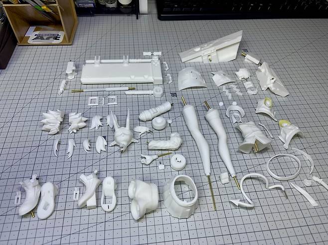 출력이 끝나서 다듬기 및 수정중인 부품들