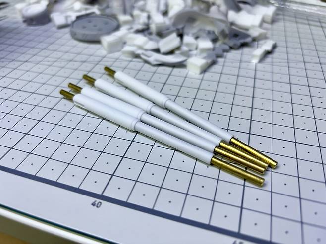 길고 얇은 부품은 레진특성상 수축 및 휘임이 생기다보니 이렇게 황동선 인서트를 해서 만들면 걱정없습니다.