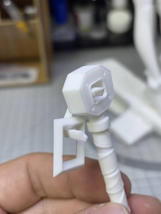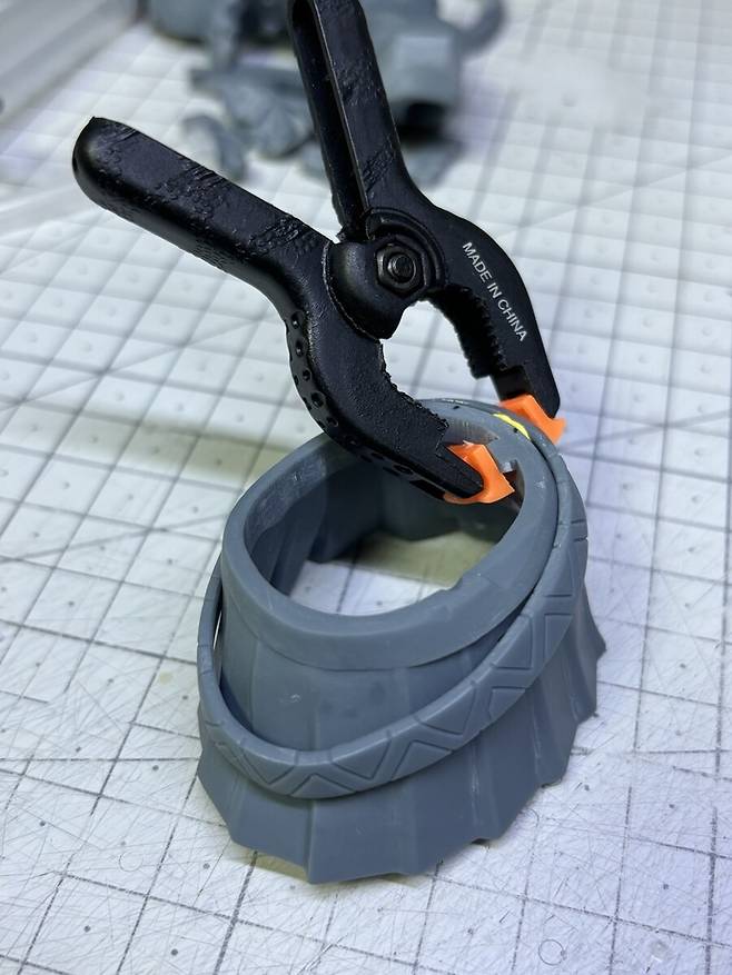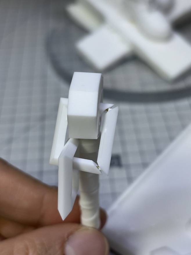 3D프린터로 출력한 뒤 부품을 다듬고 수정해줍니다.