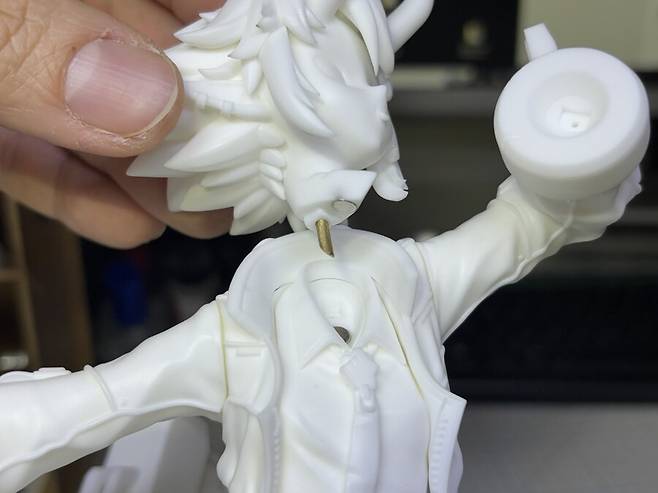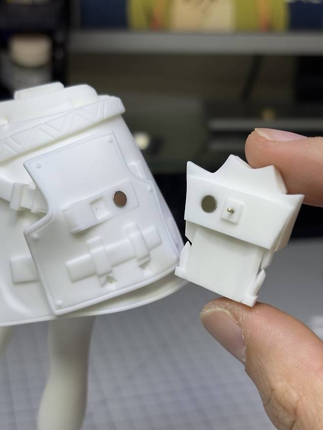 머리는 분해조립이 쉽도록 네오디움자석을 사용해서 접착제 없이 머리가 고정되도록 했습니다.