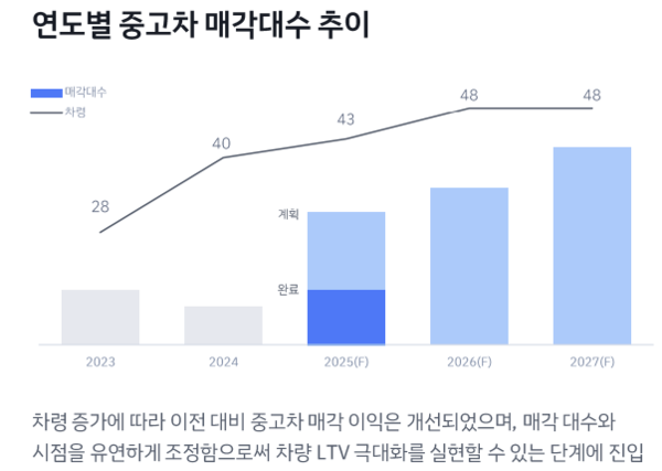 쏘카는 향후 중고차 매각을 지속해서 늘릴 계획이다. 중고차 매각을 중단하고 차량을 신사업용으로 재배치한 결과, 차량 가동률은 20%대에서 30%대로 증가했다. 신차를 구입해서 차량공유 매출을 얻지 못하고 주차장에 세워두는 시간을 줄인 것이다. 쏘카는 매각 차령에 도달한 차량의 매각 시점을 차량공유 수요와 차량 가동률을 고려해 결정할 예정이다.
