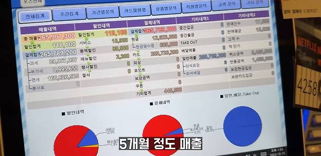 제가 5월 12일에 오픈했거든요. 한 5개월 정도 매출을 보면 한 달 평균 한 5천만 원 정도 파는 거예요. 아까 말한 7천만 원은 최고 매출이고요. 5천 정도 팔았을 때 한 2천 좀 넘게 남는 것 같아요.