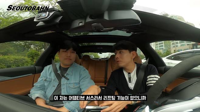 시트 포지션도 낮다 보니까 아무래도 시야는 일반 세단에 비해서 안 좋을 수밖에 없습니다. 그리고 일반 슈퍼카들이나 이런 차들은 차체가 낮은 대신에 리프팅 기능이 있는데, 이 차에는 어댑티브 서스라서 리프팅 기능이 없습니다. 차체가 너무 낮아서 조심해야 되고, 리프팅 기능이 없다는 것은 정말 아쉬운 단점입니다.