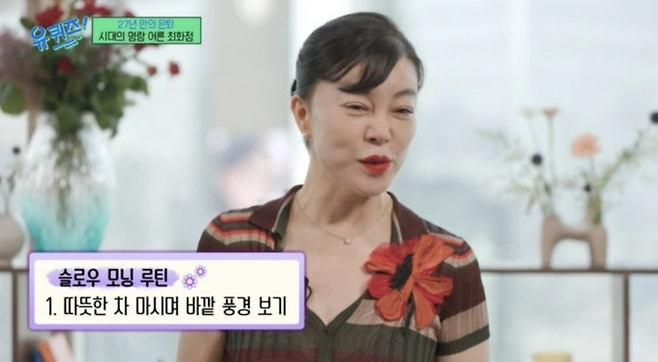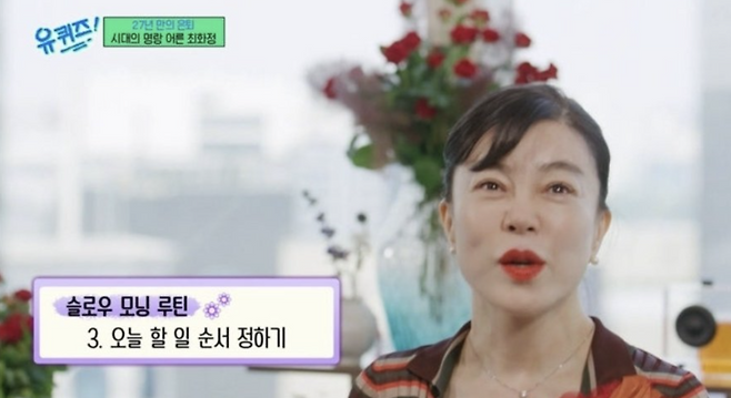 특히 최화정이 유퀴즈에 나와서 슬로우 모닝을 실천하려고 노력한다고 밝힌 바 있죠.