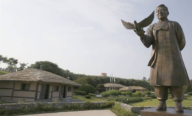 | ▲ 신안 하의도에 있는 김대중 대통령 생가. 비둘기를 손에 든 김대중 대통령의 모습이 '평화의 상징'을 나타내고 있다. |