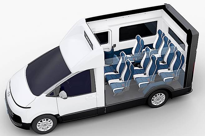 내부 공간은 최대 8명까지 탑승 가능한 구성으로, 필요시 좌석을 제거해 화물 모드로 전환할 수 있는 유연한 구조를 갖췄다. 또한 탑승객 전용 터치패널, 음성 안내 시스템, 실시간 도착 정보 안내 디스플레이 등이 탑재되어 사용자 경험을 극대화했다. 탑승 시 자동 도어 개폐와 바닥 높이 조절 기능도 포함되어 교통 약자를 위한 배려도 눈에 띈다.