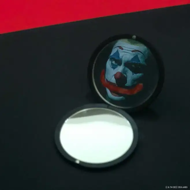 영화 <조커: 폴리아 되> 개봉을 기념해 메가박스에서 손거울 굿즈를 선보였다. 그냥 손거울이 아니다. 거울 속의 내가 조커로 보이는 신박하고 재미난 굿즈다. 거울에 조커를 상징하는 빨간 입 스티커가 붙어져 있어 거울에 비친 얼굴이 조커처럼 보인다. 현재 메가박스에서 콤보로 판매 중이다.