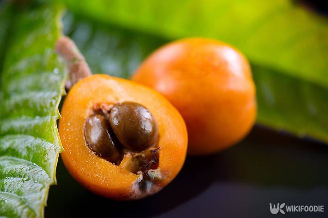 열매는 손바닥보다 작고 타원형이다. 색은 노란빛 또는 연한 주황색에 가깝다. 과육은 부드럽고 즙이 많다. 씨앗이 2~3개 들어 있으며, 크고 단단하다. 껍질은 얇아 쉽게 벗겨지고, 씹을수록 은은한 향이 입안에 남는다. 잘 익은 비파는 복숭아보다 향이 강하고, 살구보다 단맛이 깊다. 당도는 평균 12~13브릭스. 복숭아, 수박 등 여름 과일과 비슷한 수준이다.