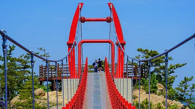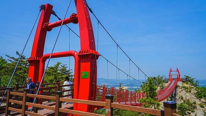 해발 250미터, 고도는 낮지만 시야는 서해를 품는다. 산 정상도 아닌 중간 지점에 설치된 길이 74미터짜리 구름다리는 최근 SNS 상에서 ‘인생샷 명소’로 빠르게 입소문을 타고 있다.