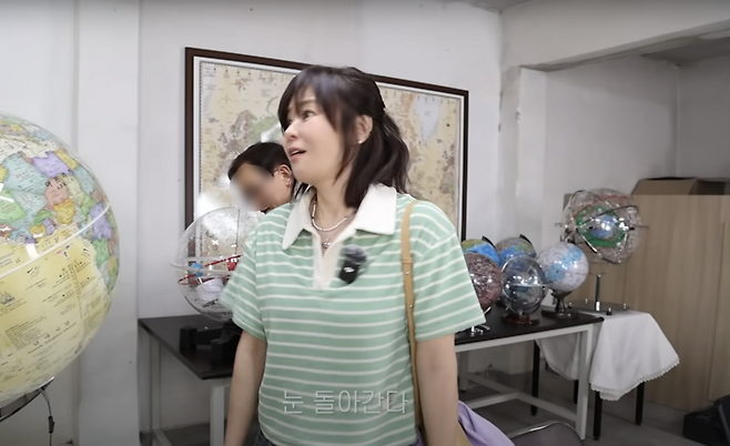최근 유튜브 영상 도전! 나도 천문지도사에서 최강희는 스트라이프 패턴의 녹색 카라 티셔츠에 데님 팬츠를 매치했다.