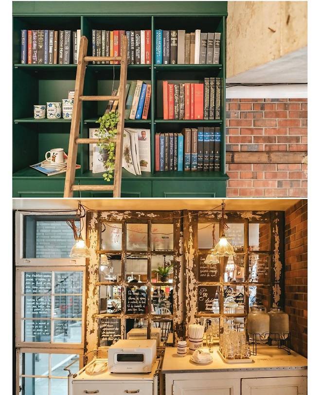 • 카페 입구부터 빈티지 유럽 감성 가득한 인테리어가 시선을 사로잡아요.