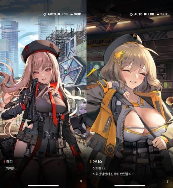 그리고 플레이어는 이런 니케를 지휘하는 신입 지휘관입니다. 초반 사고로 죽을 뻔하지만 어떻게든 살아남아 라피, 아니스, 그리고 나중에 합류하는 네온과 함께 ‘카운터스 스쿼드’를 이끌게 됩니다.