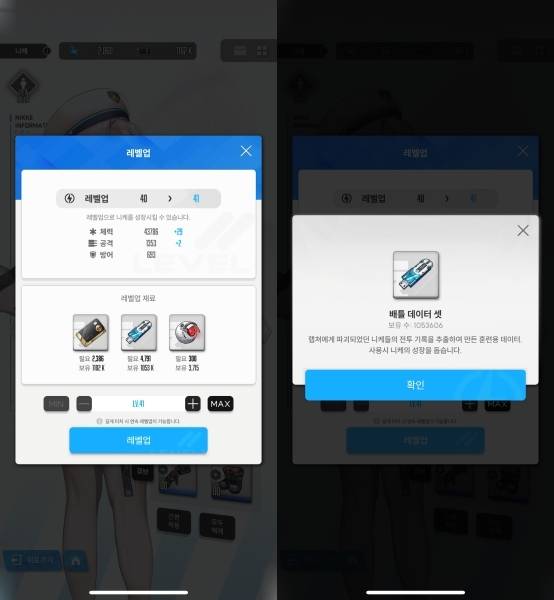 레벨업 필요 자원이 크레디트와 배틀데이터 셋, 코어 더스트로 번거로울 정도로 세분화되어 있고, 이를 획득하는 방법도 명확하지 않습니다.