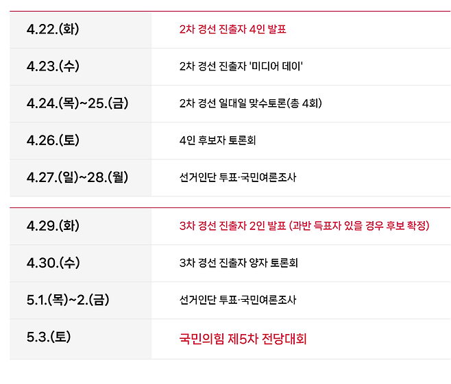 🗓️ 국민의힘 경선 일정 먼저 확인해봐요