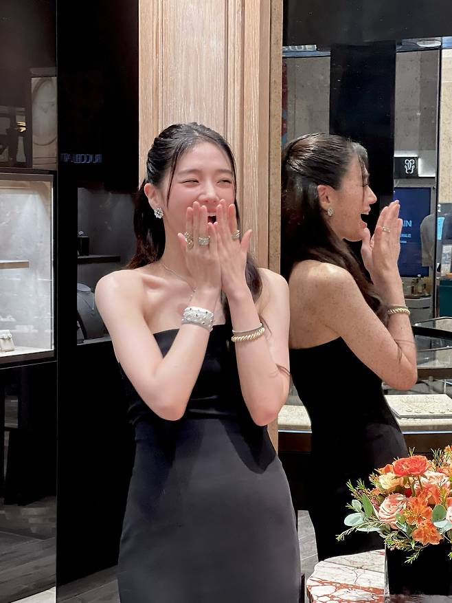 단정하게 넘긴 헤어와 깨끗한 피부톤 덕분에 주얼리의 반짝임이 더 선명하게 살아났어요.