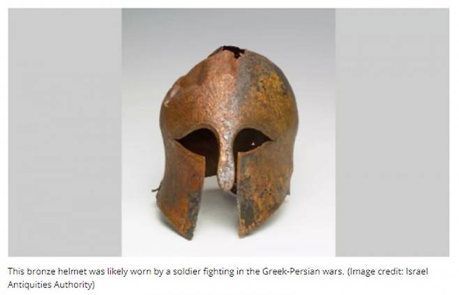 이스라엘 고대유물국(IAA)은 2500년전 그리스-페르시아 전쟁 중 사용한 것으로 보이는 비교적 양호한 상태의 청동 투구를 발견했다고 최근 발표했다.