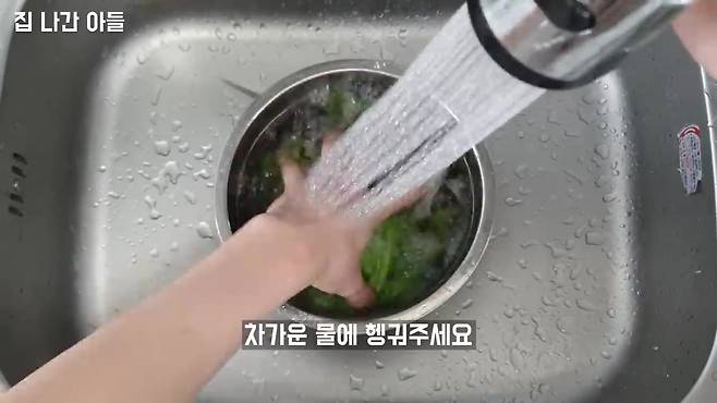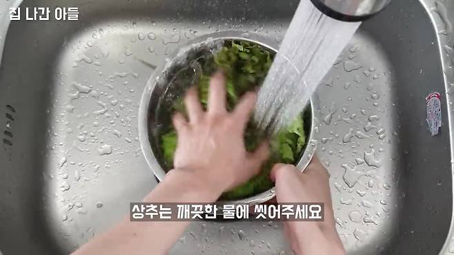 전자레인지에서 조리된 상추는 랩을 제거하고, 차가운 물에 한두 번 헹궈 탱탱하게 만들어줍니다.