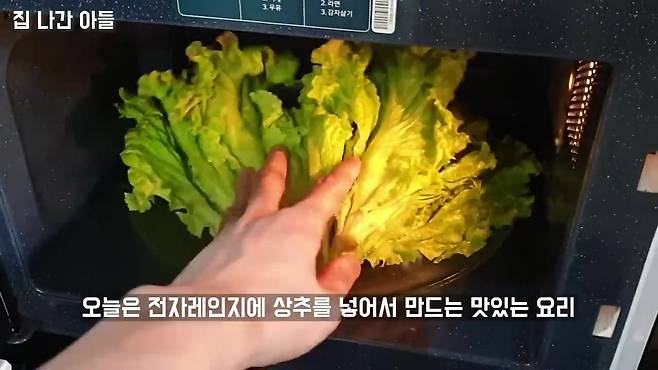 전자레인지에서 조리된 상추는 랩을 제거하고, 차가운 물에 한두 번 헹궈 탱탱하게 만들어줍니다.