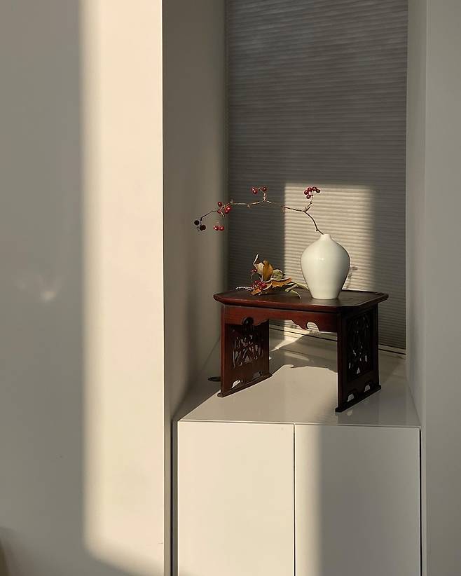 집은 저에게 소우주 같은 공간입니다. 애정하는 기물들을 갤러리에 온 것처럼 진열하고 배치하면서 힘을 얻습니다. 공간이라는 것은 저에게 아주 많은 영감을 줍니다. 기분, 인생을 대하는 자세의 중심을 잡게 해주는 아주 중요한 공간이지요. 또한 꾸준히 정리하고 청소하고 나의 스타일대로 부지런히 꾸며야 하지만 그 행위 자체가 힐링입니다.